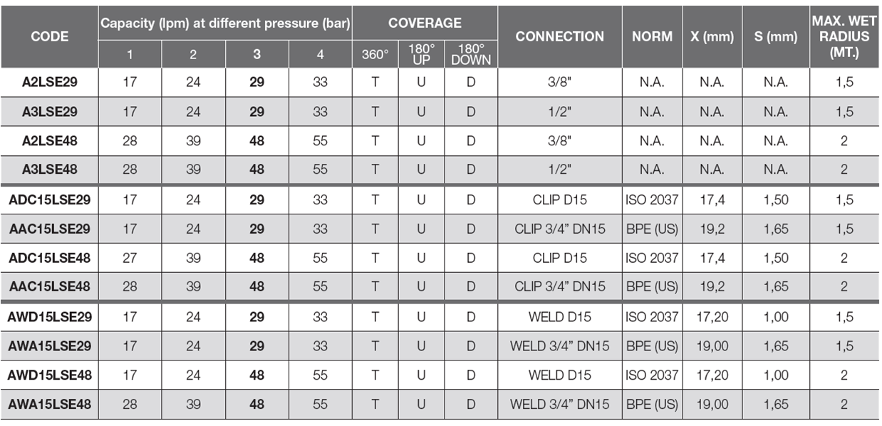 Descrizione: AISI 316 – TESTA ROTANTE LAVAGGIO SERBATOI – CONNESSIONE A CLIP DN15 ISO 2037 (3/4) MODELLO LSE 360° – LT/MIN.29 -3 BAR
